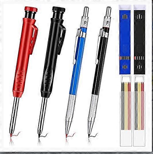 Various Styles in the Package: you will receive 4 pieces of woodworking pencils and 4 boxes of corresponding marker refills; These pencils include long nosed deep hole style and normal style, the long nosed deep hole style has 2 colors, red and black, and corresponding 2 boxes of refills have 3 colors in each box, black, gold and red, 2 pieces in each color, the normal style is blue and black with 2 boxes refills, 2 red and 10 black in each box, sufficient quantities for your daily use