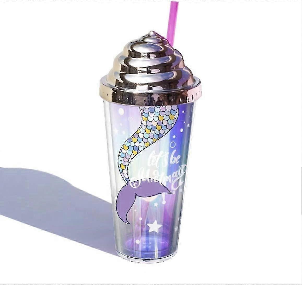 Mermaid Cup Insulated Double Wall Reusable 14Oz Plastic Travel Tumbler Cup With Lids And Straws Wate