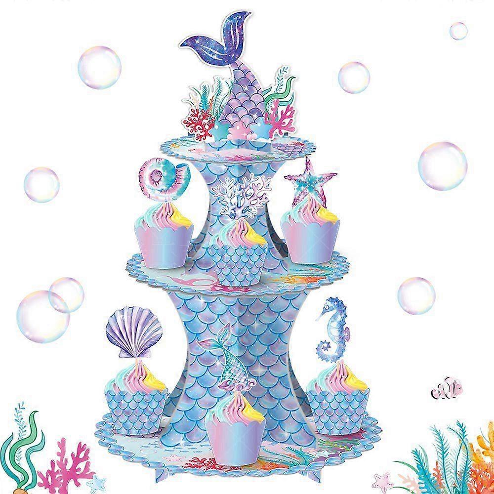 Mermaid Cake Stand 3 Tier Mermaid Party Supplies Mermaid Tail Cupcake Stand for Girls Underwater Theme Party Little Mermaid Baby Shower Birthday_Speci