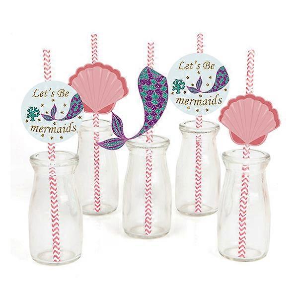 Mermaid Theme Party Drinking Straw Let's Be Mermaid Happy Birthday Party Straws Baby Shower Decoration Party Supplies