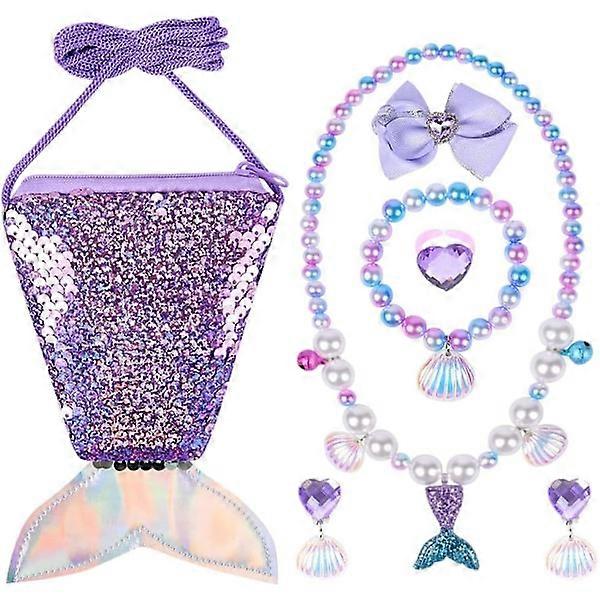 Mermaid Bag Jewelry Gift, Mermaid Crossbody Bag Purse with Jewelry Set, Mermaid Princess Necklace Bracelet Rings Earrings