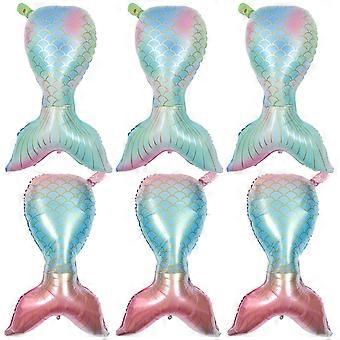 Mermaid Birthday Balloons Gradient Green Pink Design Photo Props Family Gathering 6Pcs