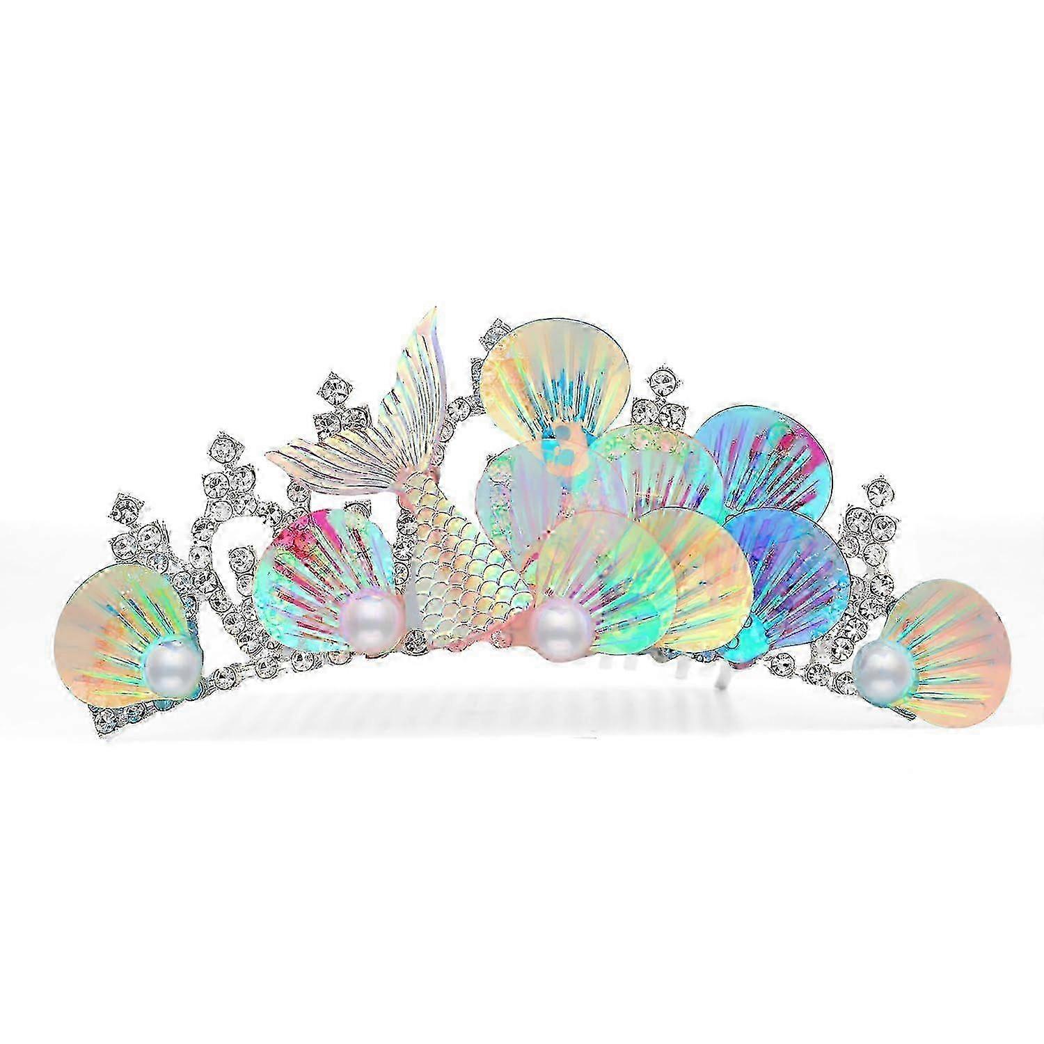 Mermaid Headband, Mermaid Headband Crystal Rhinestones Comb For Tiara Elegant Hair Accessories for Women Girls Birthday Wedding Party