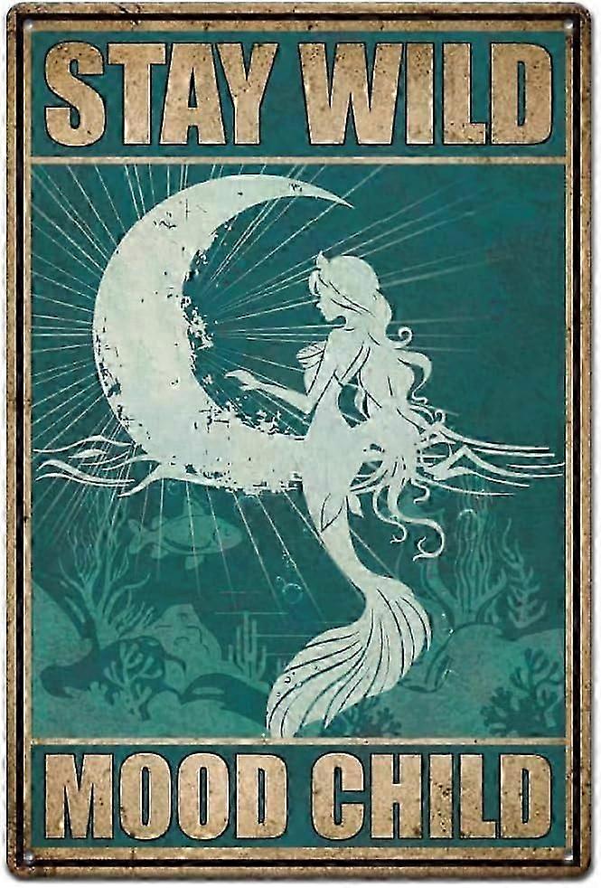 Mermaid Metal Tin Sign Vintage Moon Phases Tin Signs Stay Wild Moon Child Metal Plaque Submarine World Iron Wall Art Poster Old Fashion for Girl's Roo
