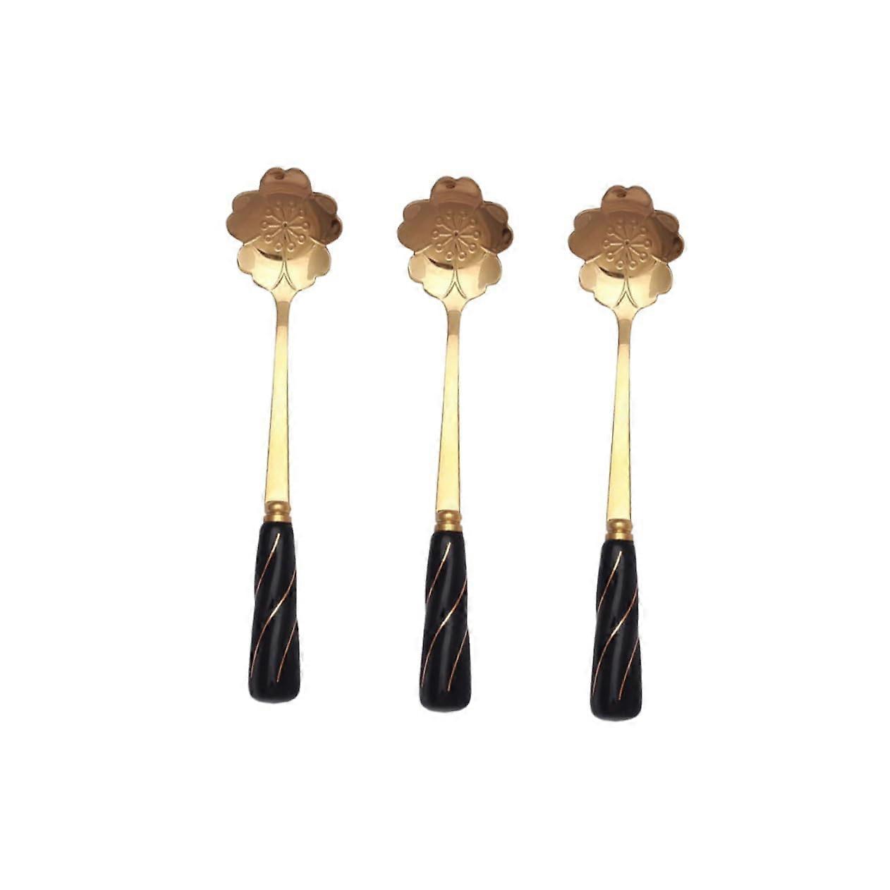 Mixing Spoons 3Piece Petal Stirring Spoons Long Handles Stainless Steel Ceramic Handle