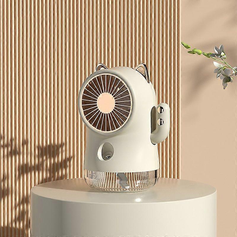 Misting Desk Fan Fortune Cat Shape Multifunction Nano Spray 3 Speeds Small Cooling Misting Fan for Home Office Travel White