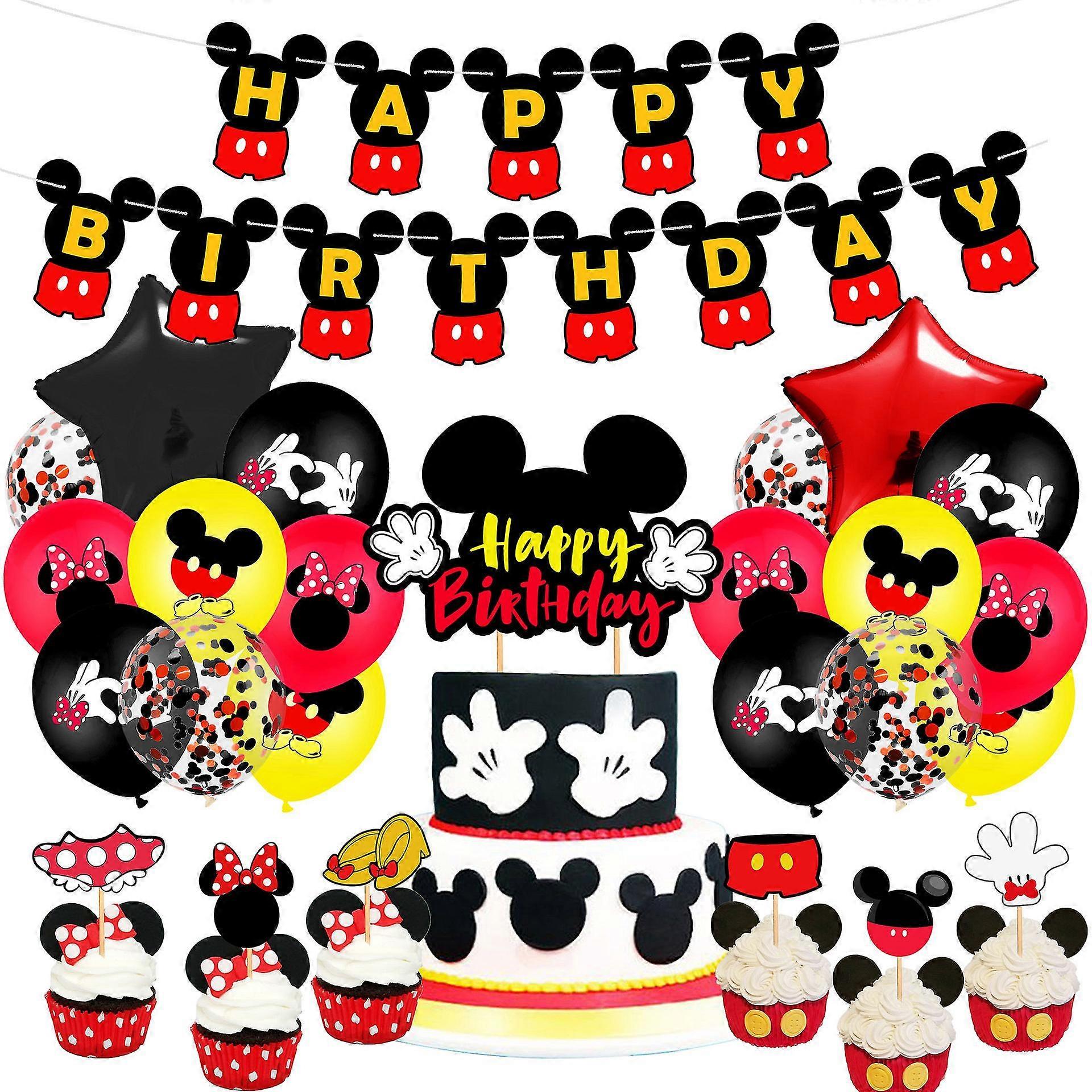 Mickey Mouse Themed Kids Birthday Cake Insert Banner Balloon Set Party Decoration Supplies