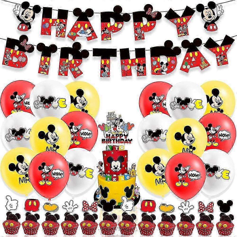Mickey Mouse Themed Birthday Party Kit with Balloons, Banners, and Cake Toppers