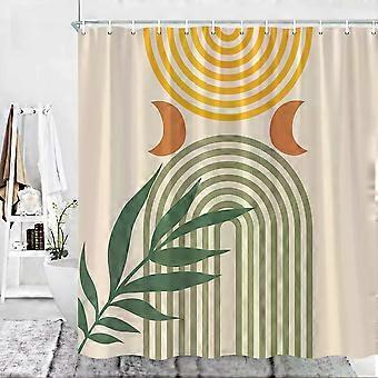 ミッドセンチュリー抽象シャワーカーテンアーチサンムーンミニマリスト幾何学曲線ストライプファブリッシュクリスマスランドスケープカーテンフック240x180cm-94x70in~08902