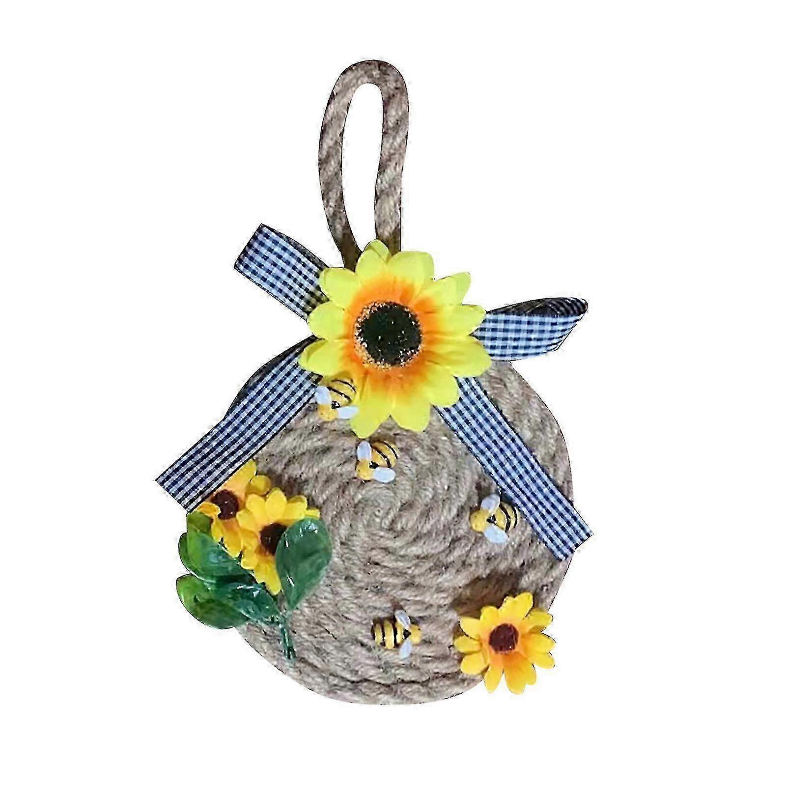 Honeybee Festival Wreath Sunflower Bee Hemp Rope Bow Hanging Crafts