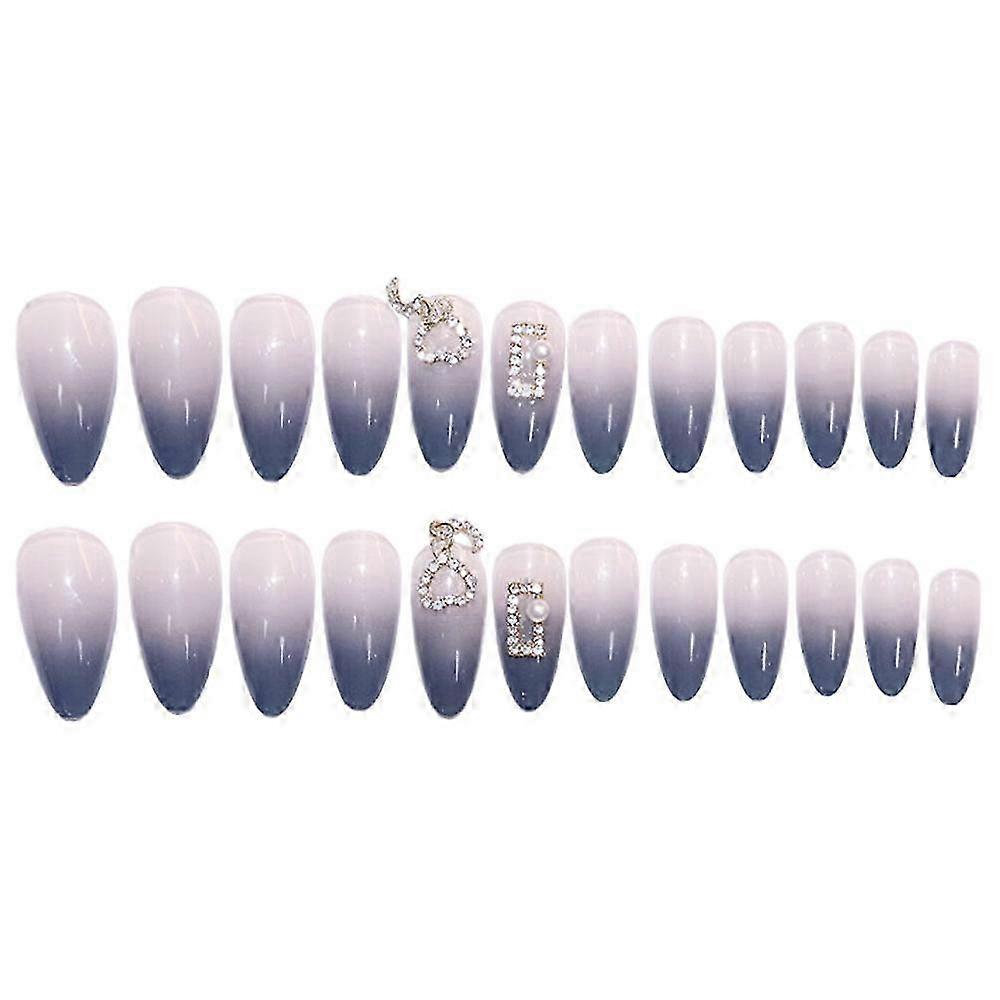Medium Long Blue Fake Nails - Graded Nail Patches Wear