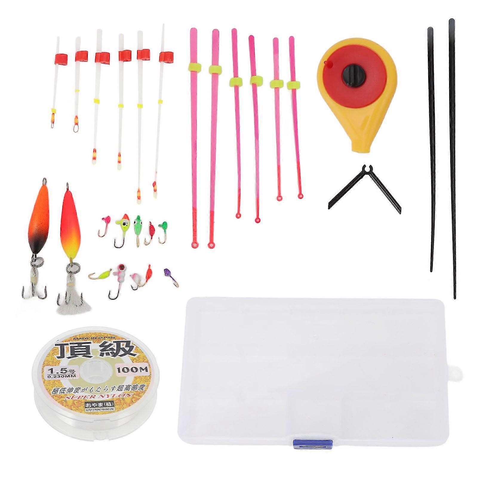 1、High Strength: Made of premium ASB, EVA, high carbon steel and carbon materials, the mini ice fishing rod kit is of high strength, waterproof, durable and not easy to damage. 2、Continuous Sharpness: After repeated grinding, the hook can effectively ensure the continuous sharpness of the hook tip, with barbs, and reduce the probability of the hooked fish decoupling. 3、Complete Tool Kit: This ice fshing trackle kit contains a complete tool of mini ice fishing ros, rod top tips, swim jigs, fishing hooks and 100m fishing lines. 4、Lightweight and Portable: This ice fishing rod and hook line set comes with a fishing hook storage box, which is lightweight and portable. 5、Applicable Scene: Mini ice fishing rod kit is the best choice for ice fishing enthusiasts to go out fishing in winter. Suitable for fishing in river, reservoir pond, ocean beach fishing, lake, ocean boat fishing, stream, ocean rock. 1 x Ice Fishing Rod Body2 x Pole1 x Bracketnbsp;1 x Fishing Line(100m)12 x Fishing Rod Top Tipnbsp;12 x Fish Hook1 x Storage Box Item Type: Mini Ice Fishing Rod KitMaterial: ASB, EVA, high carbon steel, carbonGross Weight: 140g / 4.9oz