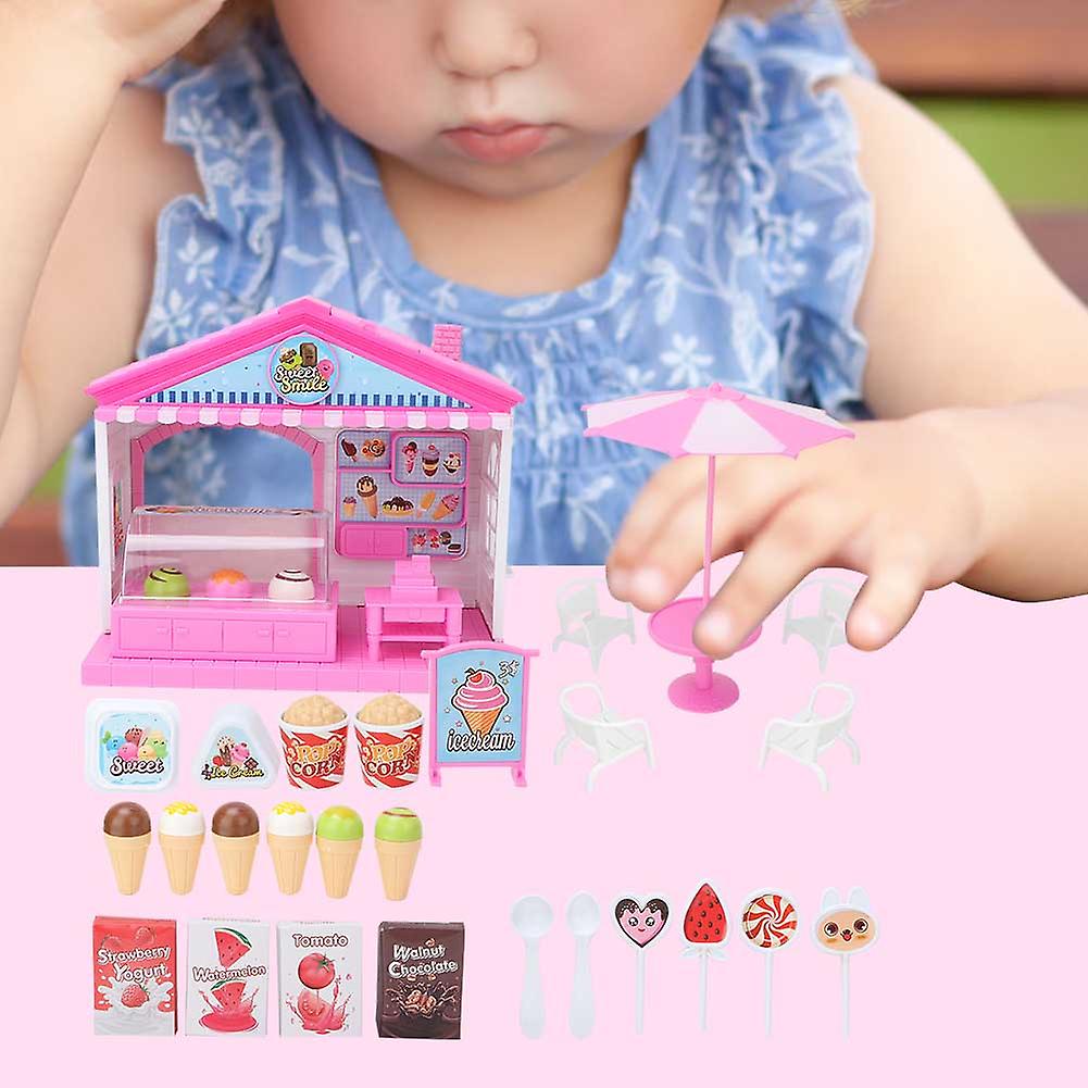 Mini Assemble Ice Cream/Burger Shop Model Educational Toy for Kids Children (Ice Cream Shop)