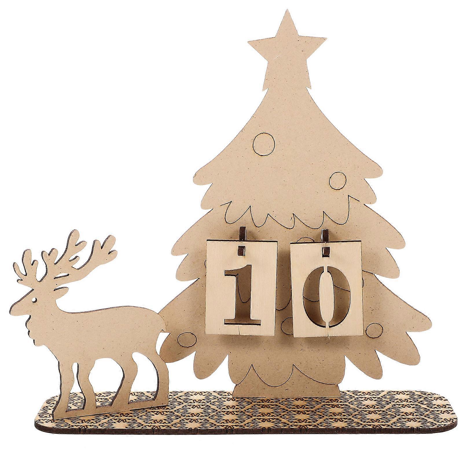 Mini Wood Ornaments Wooden Countdown Calendar Beige Festive Decor 19.5X19X6CM 1Set