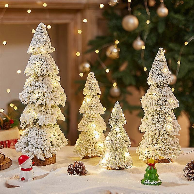 Mini Christmas tree diy cedar desktop atmosphere decoration, Christmas decoration with string lights, Christmas gift window micro landscape
