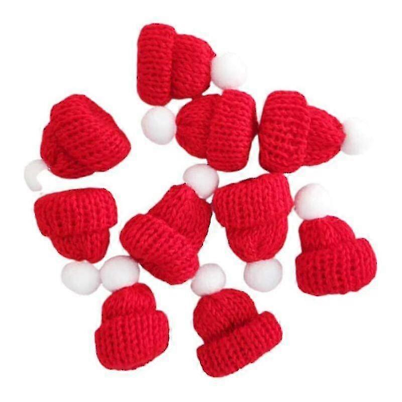 Mini Christmas Hat Ornaments, Knitted DIY Crafts, 10-Piece Red Set