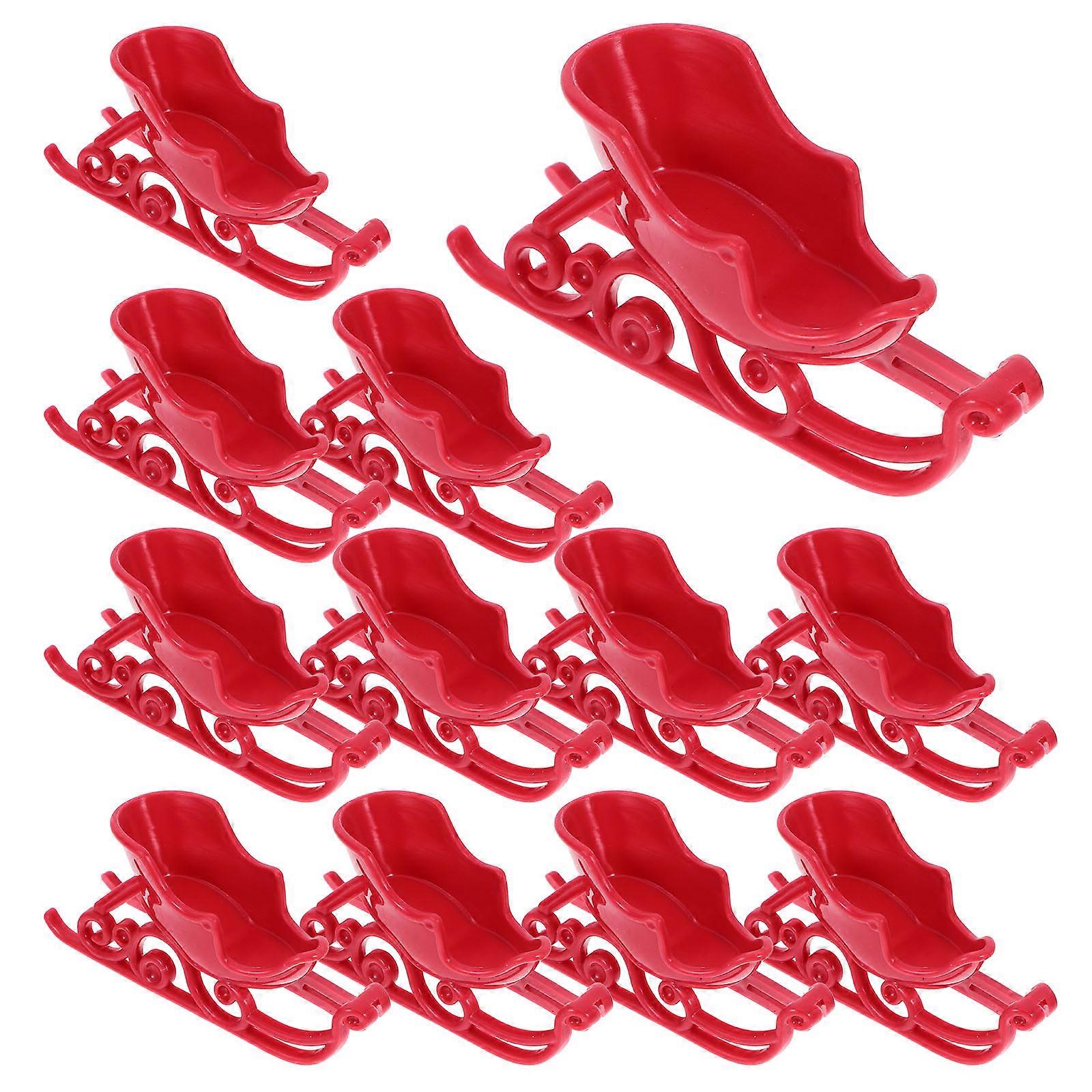 Mini Christmas Plastic Santa Sleigh, 12pcs Red Miniature Ornament Xmas Table Decor DIY Craft Party Favor Tree Hanging Decoration 2.8 Inch L