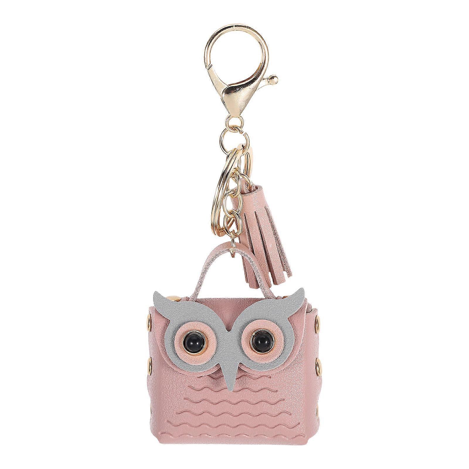 Mini Coin Purse Keychain Owl Wallet For Women Daily Use Pink Pu Leather Coin Storage 1Pcs