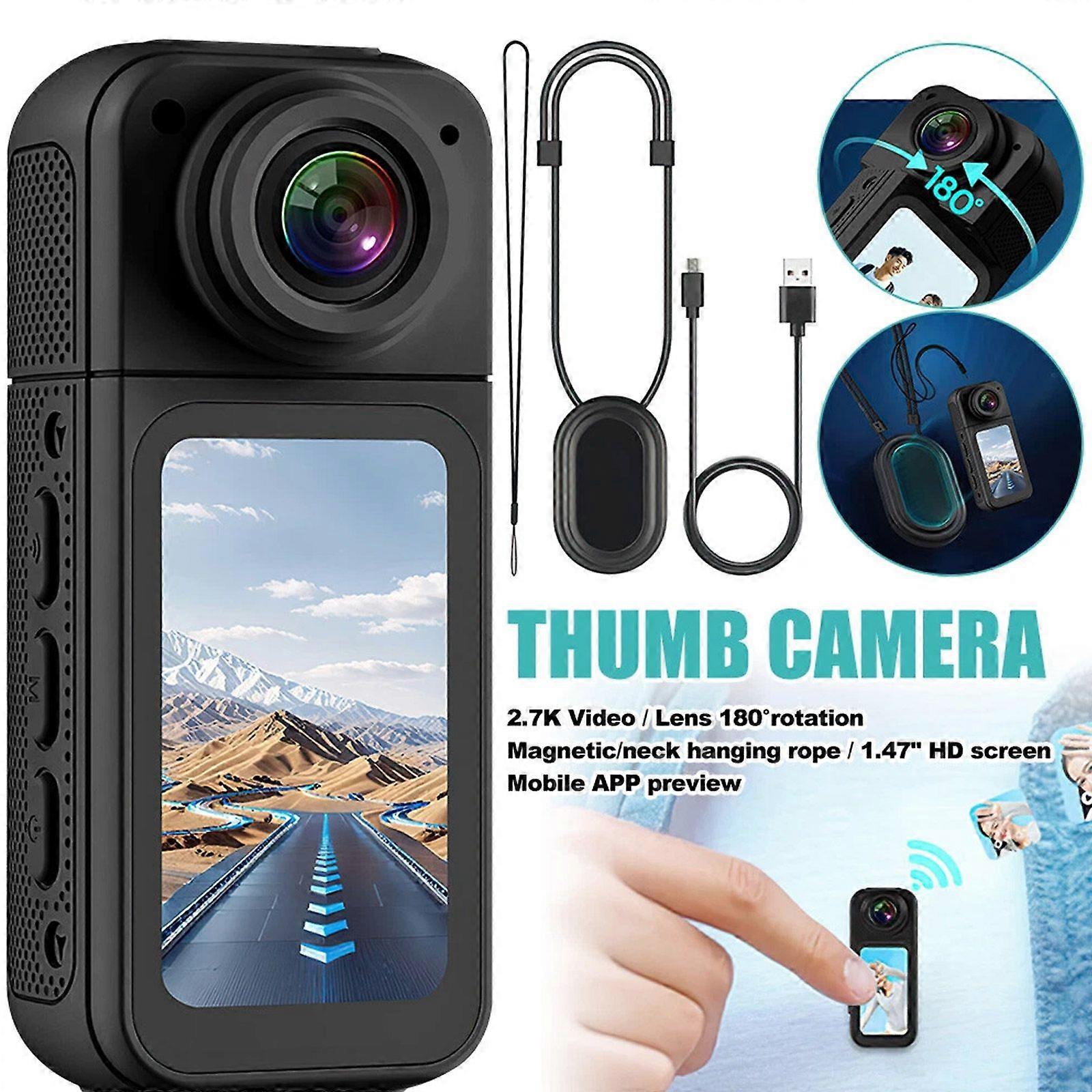 2.7K Thumb Action Camera WiFi Sports Camera Camcorder Portable Body Camera with Magnetic Lanyard 1.47" IPS Screen 180° Rotating Lens Wearable Pocket Camera for Outdoor Sports, Fitness, Cycling, and Yoga Recording Fitness Tracker Compact Camera