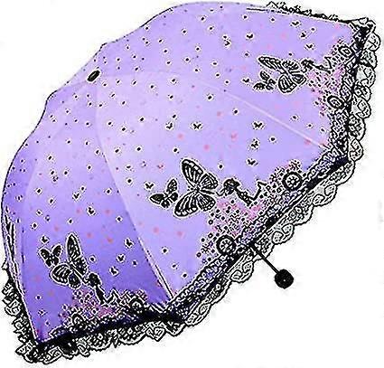 Mini Sun Umbrella (purple), Simple Butterfly Lace Side Style Portable Weatherproof Compact Folding Travel Umbrella Uv