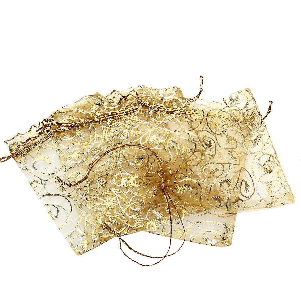 Mini Jewelry Bags Drawstring Pouches Organza Material 9*12cm Golden For Party and Festival 100Pcs