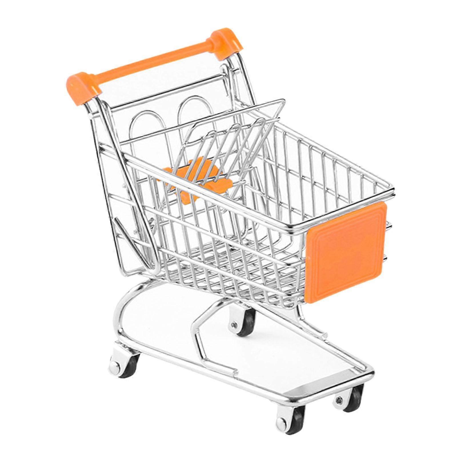 Mini Shopping Cart Supermarket Metal Handcart Toy Ornament Desktop Organizer orange
