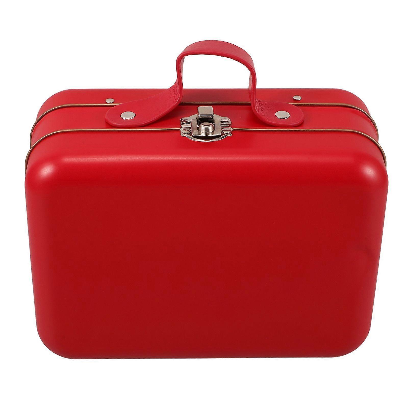 Mini Suitcase Iron Vintage Mini Suitcase Boxes Candy Box Tin Plate Box Coin Storage Container for Party Wedding Decoration Red