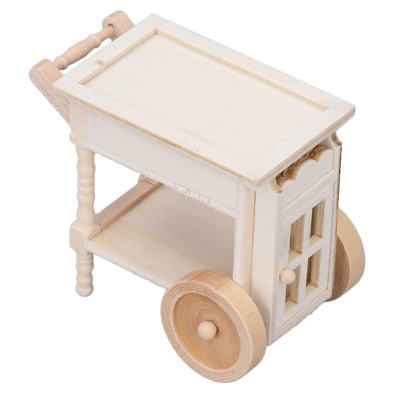 Mini Dining Cart Wooden Lifelike Unpainted Retro Ornament Miniature Food Serving Cart for 1/12 Dollhouse