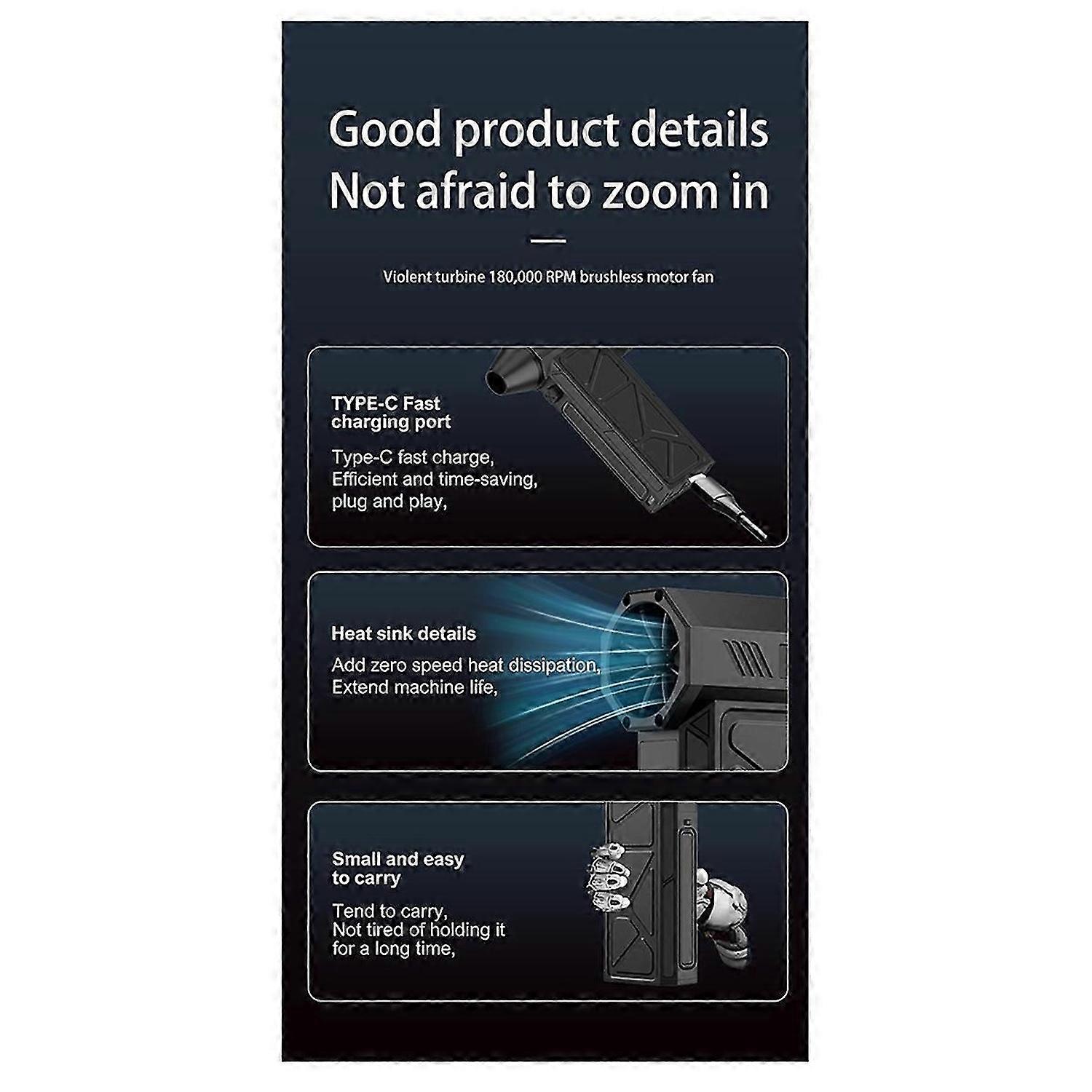 Mini Turbo Jet Fan Air Blower 130000RPM 52M/S Turbo Fan 8000mAh