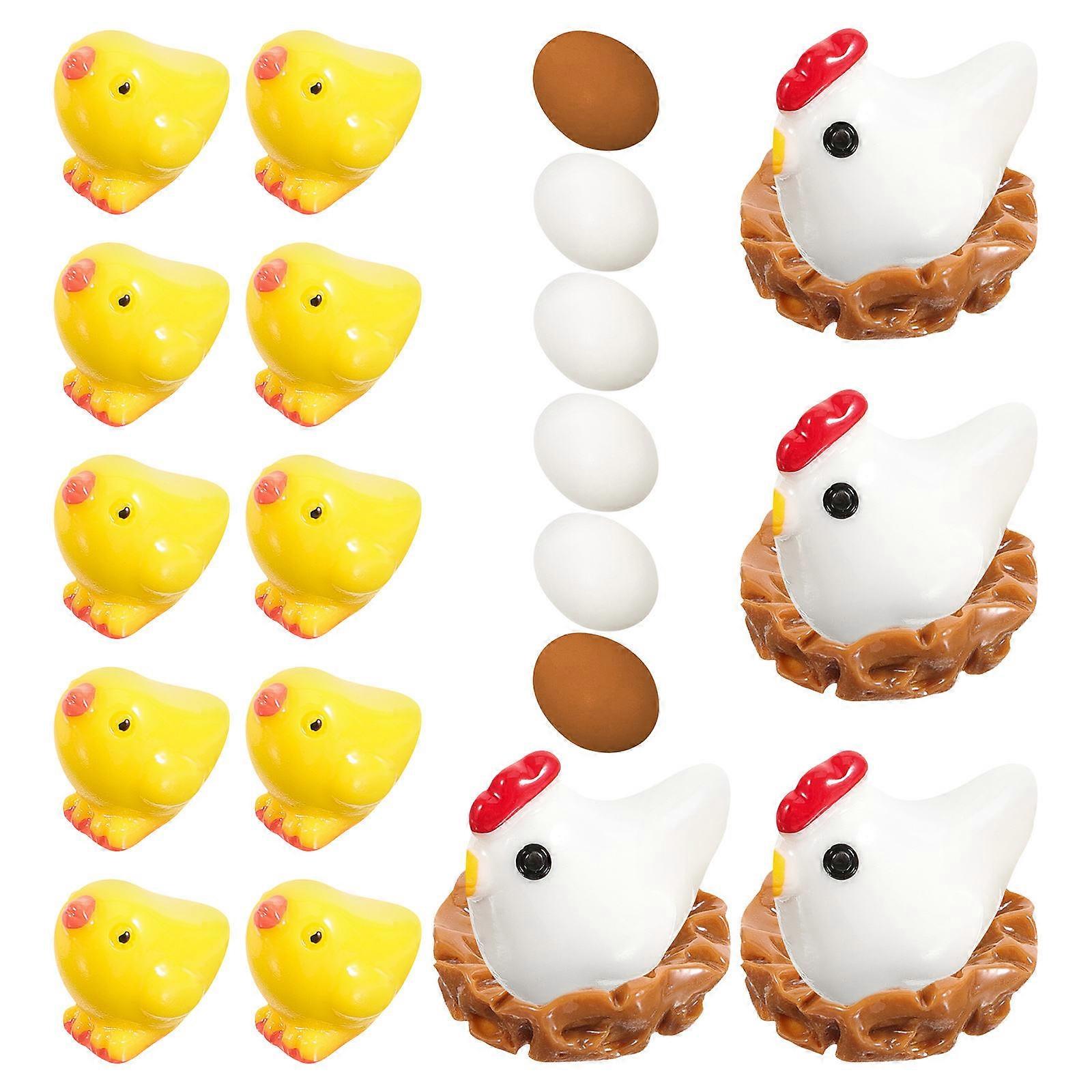 Mini Chicken Figurine 4Sets for Micro Landscape Decoration