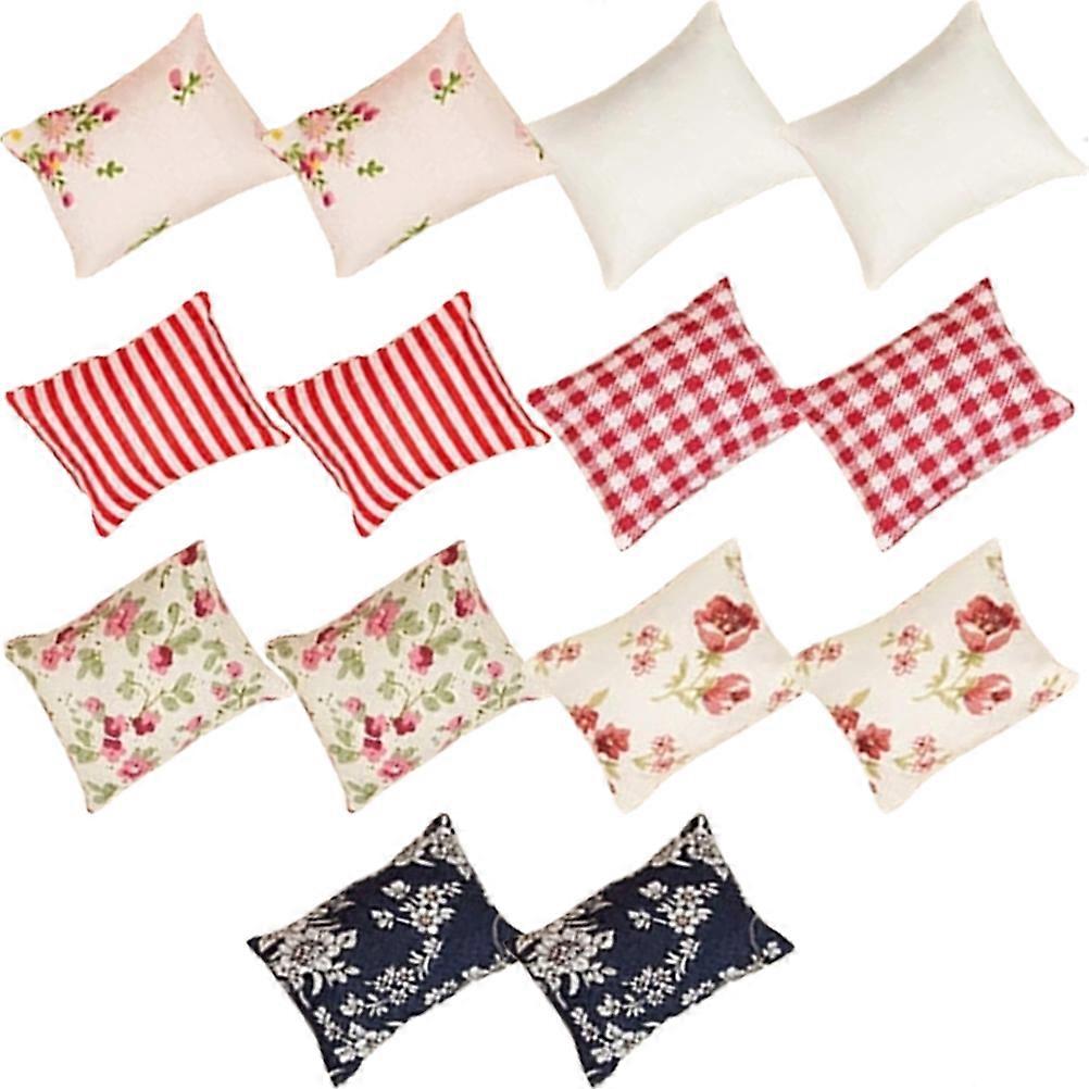 Miniature Toy Pillow Mini House Sofa Back Cushion Miniature Landscaping Scene Ornament Assorted Color 5.50X4.50X1.00CM 14Pcs