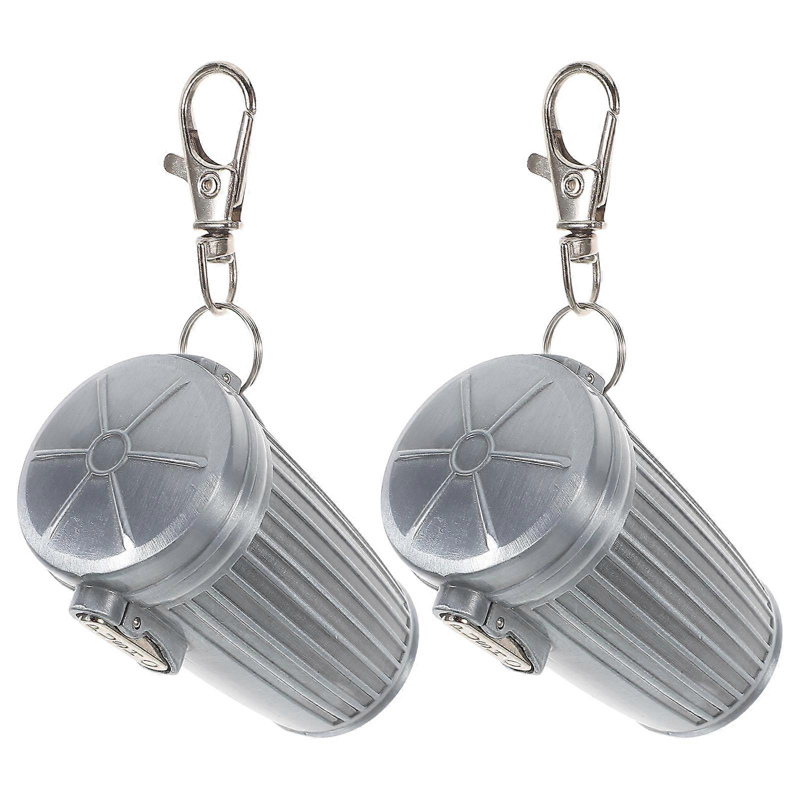 Miniature Ash Holder Portable Metal Tube Windproof Car Use Smokers Silver 6.00X3.30X3.30CM 2Pcs