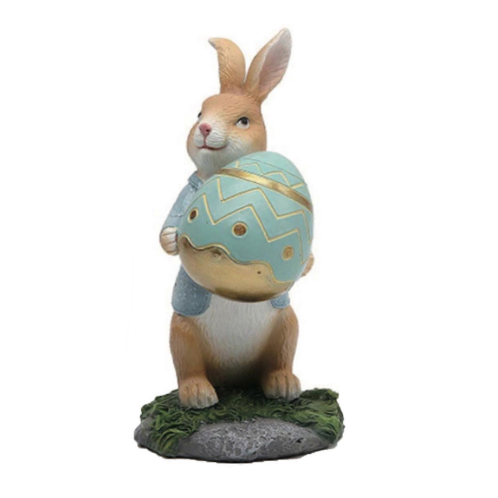 Miniature Easter Figurine Resin Bunny Holding Carrot or Egg Statue Carfts for Home Festival Party Outdoor Garden Decorat