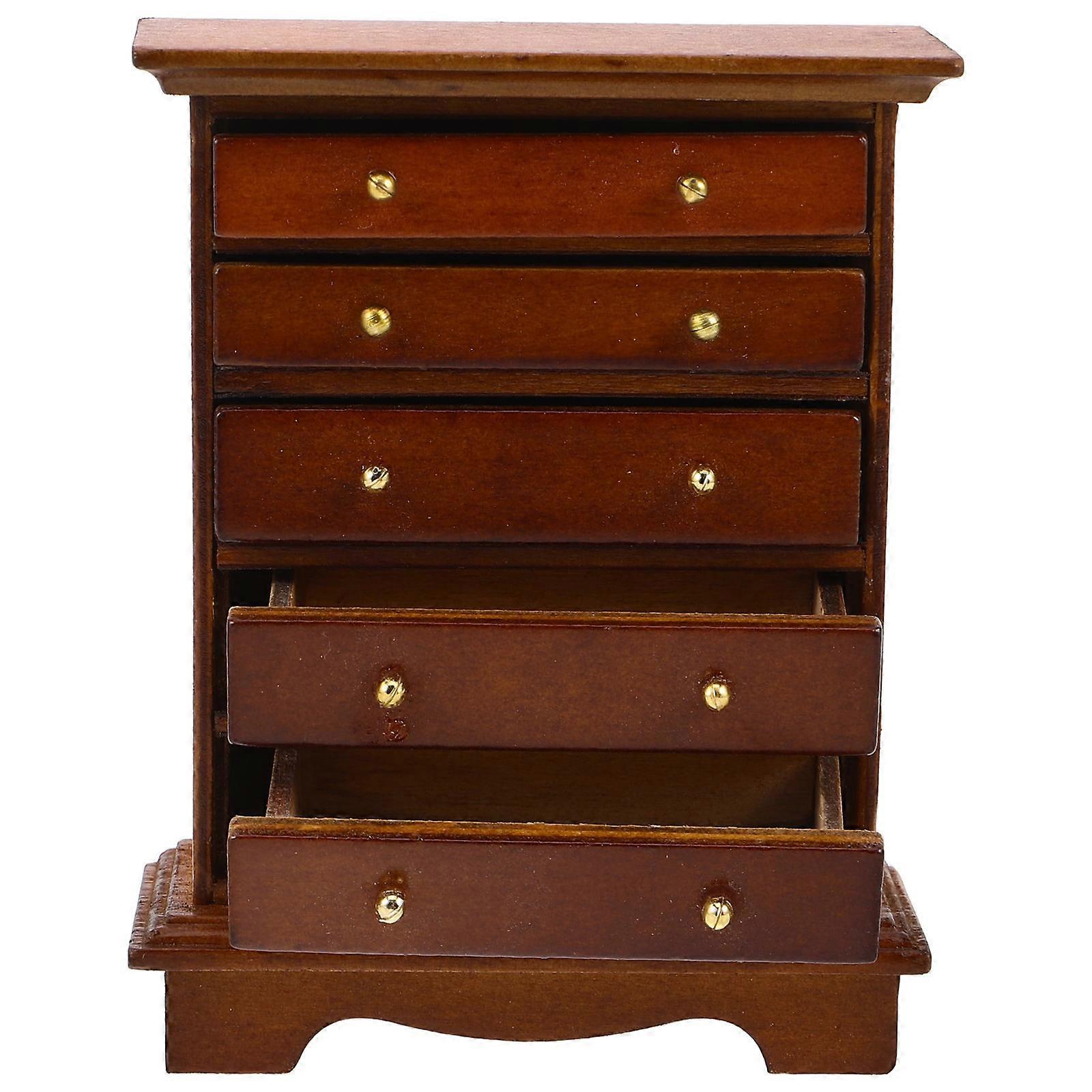 Miniature Walnut Finish Compact Nightstand Chest for Dollhouse Bedroom Decor