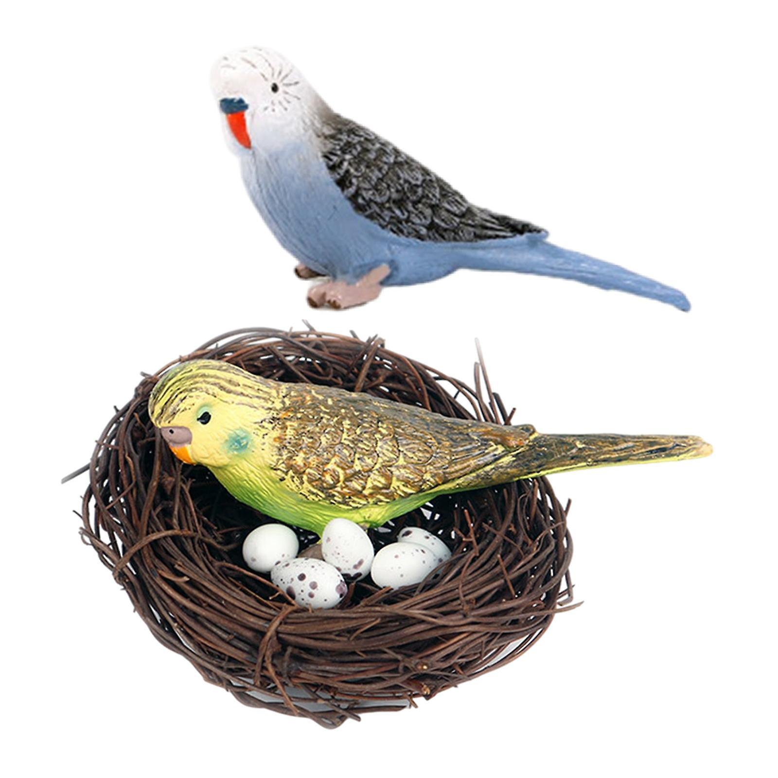 Miniature Parrot Bird Nest Egg Figurine for Outside Accessories Home Decor C