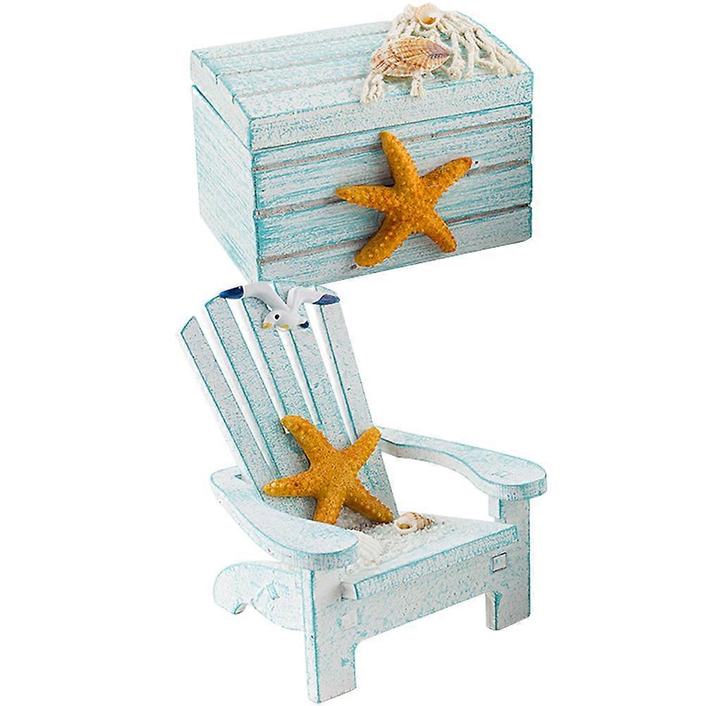 This item is a mini wood ornament set. Made of good material and designed with beach chair with Mediterranean style, with fine workmanship and lovely appearance, ensure their popularity. Can be used as festival and scene prop ornaments, also can be used as a gift to others. Features - ColorAssorted Color -Material:Pine -Size:10.00X9.20X9.00cm/3.93X3.62X3.54in(chair ornament) -Size:9.00X6.00X6.00cm/3.54X2.36X2.36in(box ornament) - Perfect for playing house decoration, miniature garden decorations, landscape ornament etc. - Designed for display on the bookshelf, sill and desk for people to watch or decorate your home. - Mini chair with chic design, looking unique and beautiful, bringing you a good mood. - The fresh style design can give you relaxed atmosphere. A nice decoration piece for your kids. - Made of premium wood material, the Mediterranean style mini chairs and boxes are very and funny. Package list: 5 x beach chair model 5 x wood box model