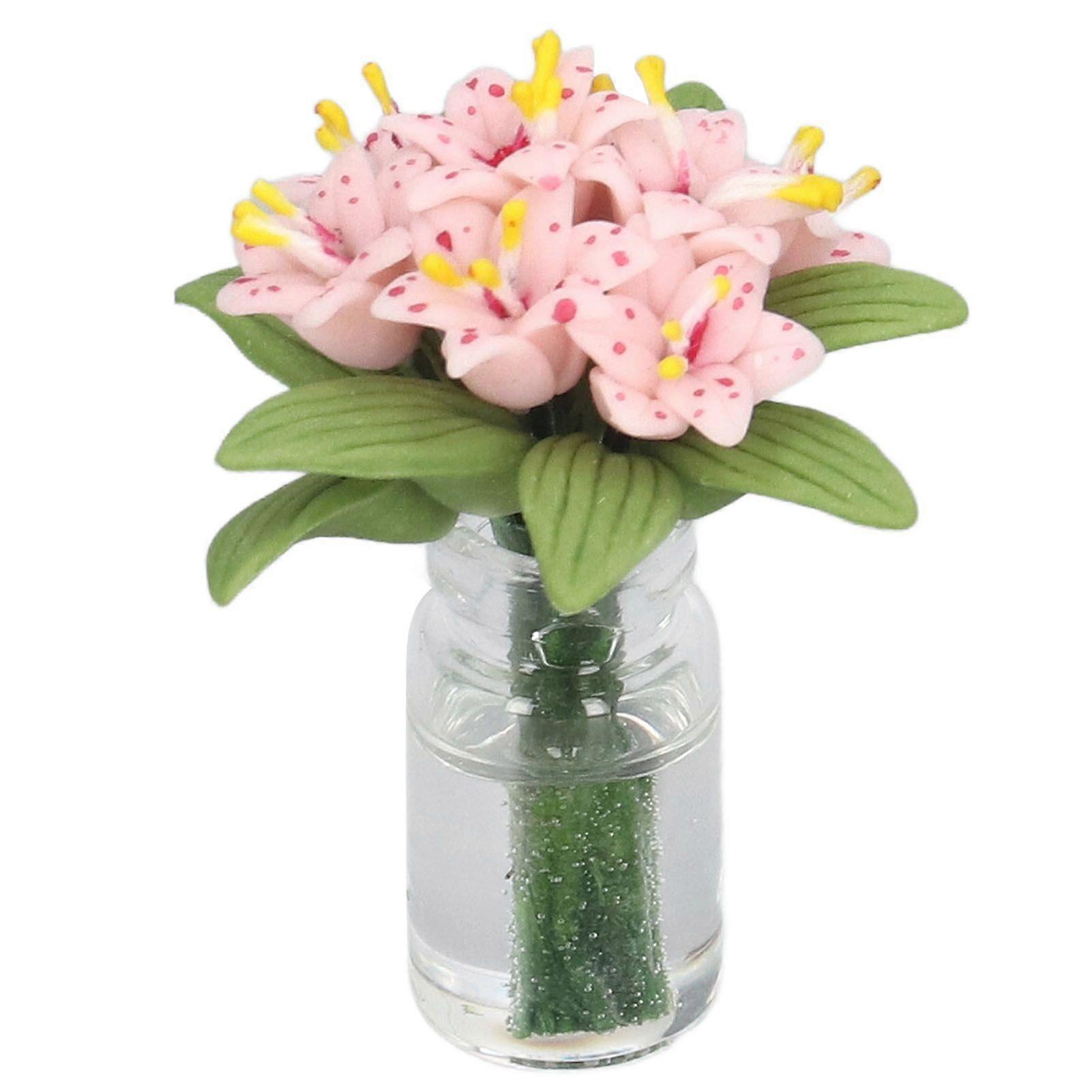 Miniature Dollhouse Pink Artificial Lily Flower Model Plant Accessories Gift for Home Ornament