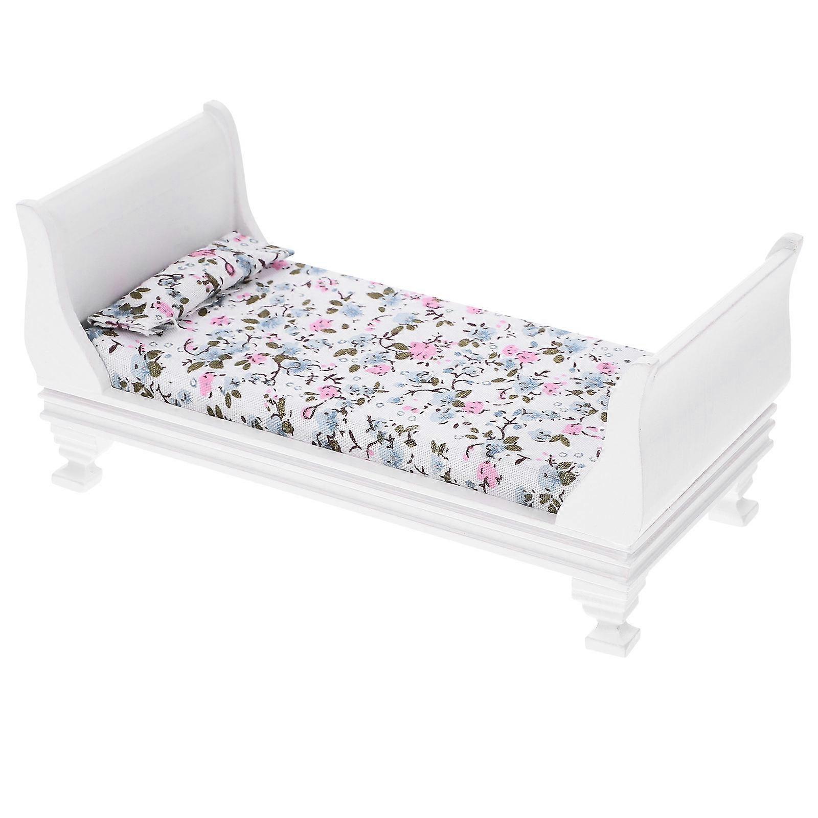 Miniature Dollhouse Bed Tiny Furniture Model Vintage Single Bed Realistic Craftsmanship Bedroom Decor Accessory for Dolls House and Photography