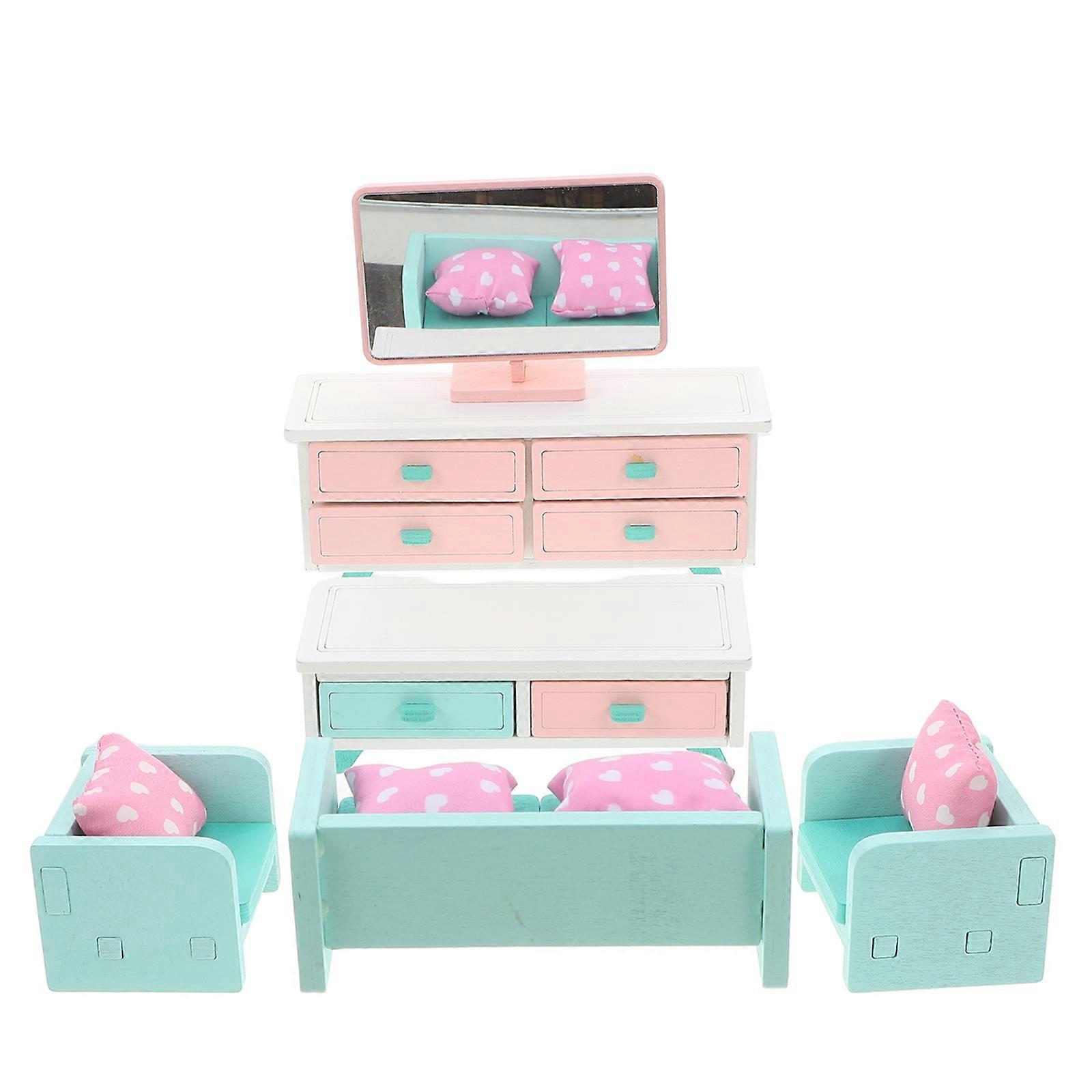 Miniature Dollhouse Living Room Furniture 10Pcs Wooden Accessories For Children Assorted Color Comfortable Sofa And Coffee Table
