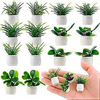 Miniature Dollhouse Plant Set 14pcs Dolls House Bonsai Plant 1:12 Mini Garden Potted Plants Tiny Flower Model Greenery Ornament