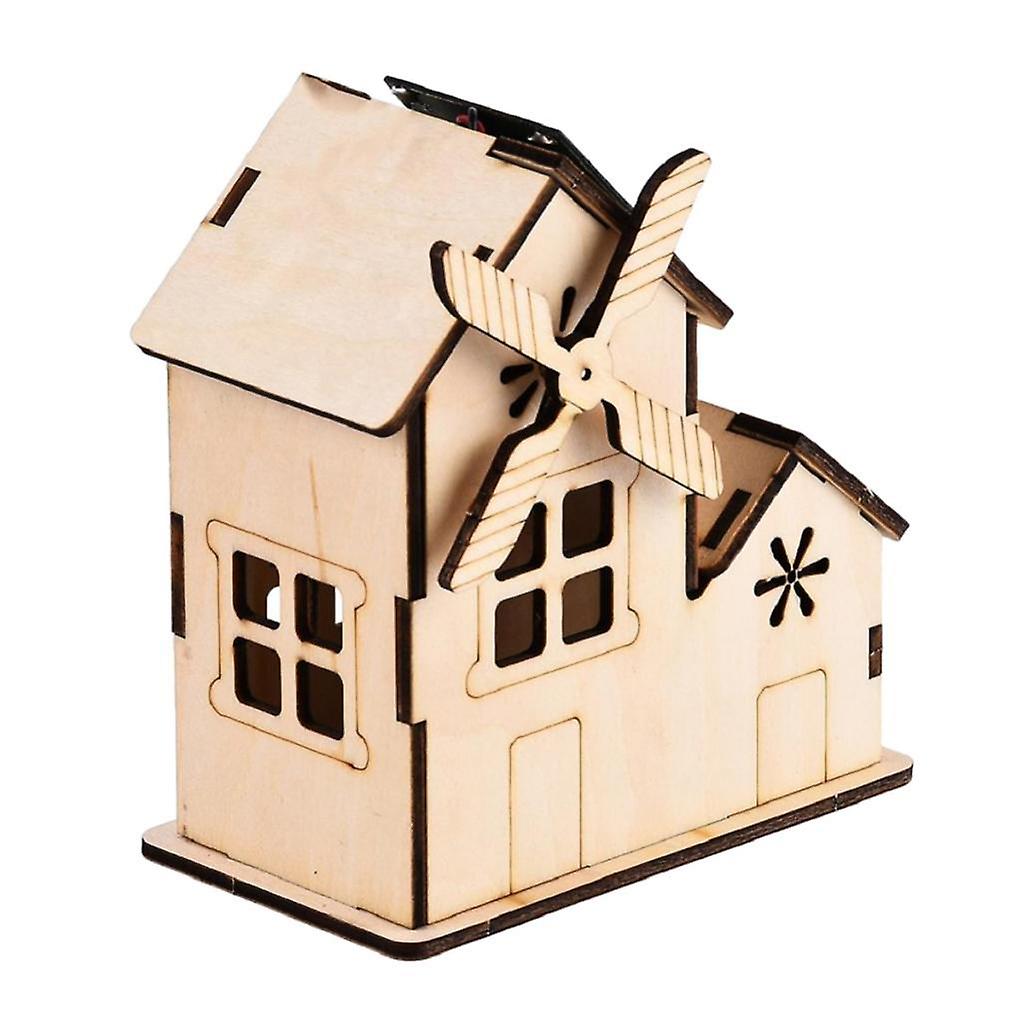Miniature House Solar Powered Toy Kids Science Educational 3D Model Wooden