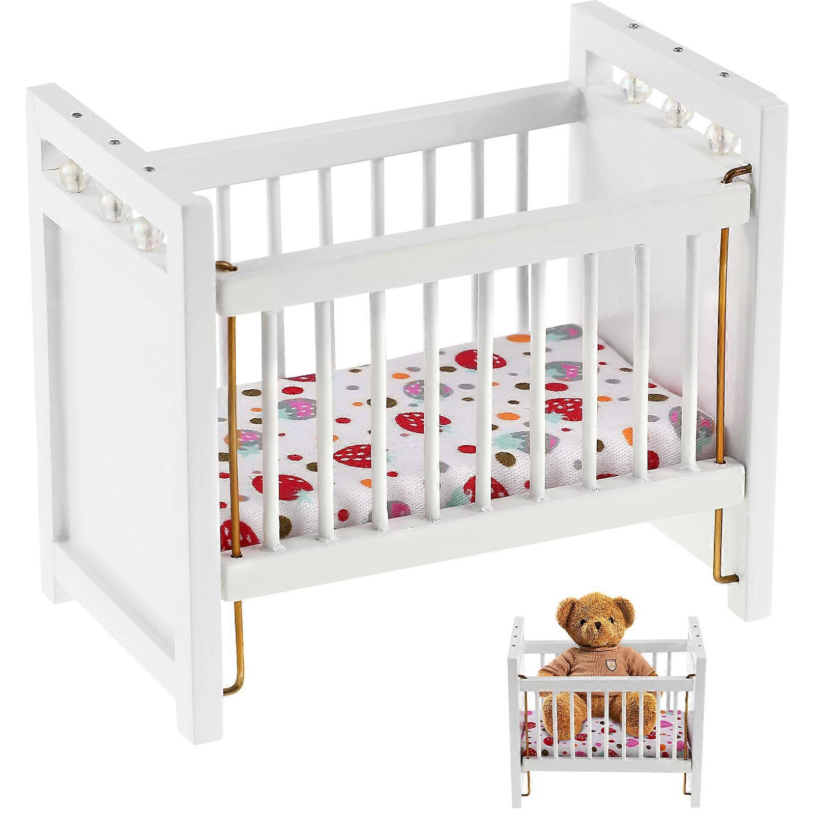 Miniature Baby Crib Mini House Furniture Model DIY Scene Doll Home Furniture Craft Decorative Accessory Toy Ornament