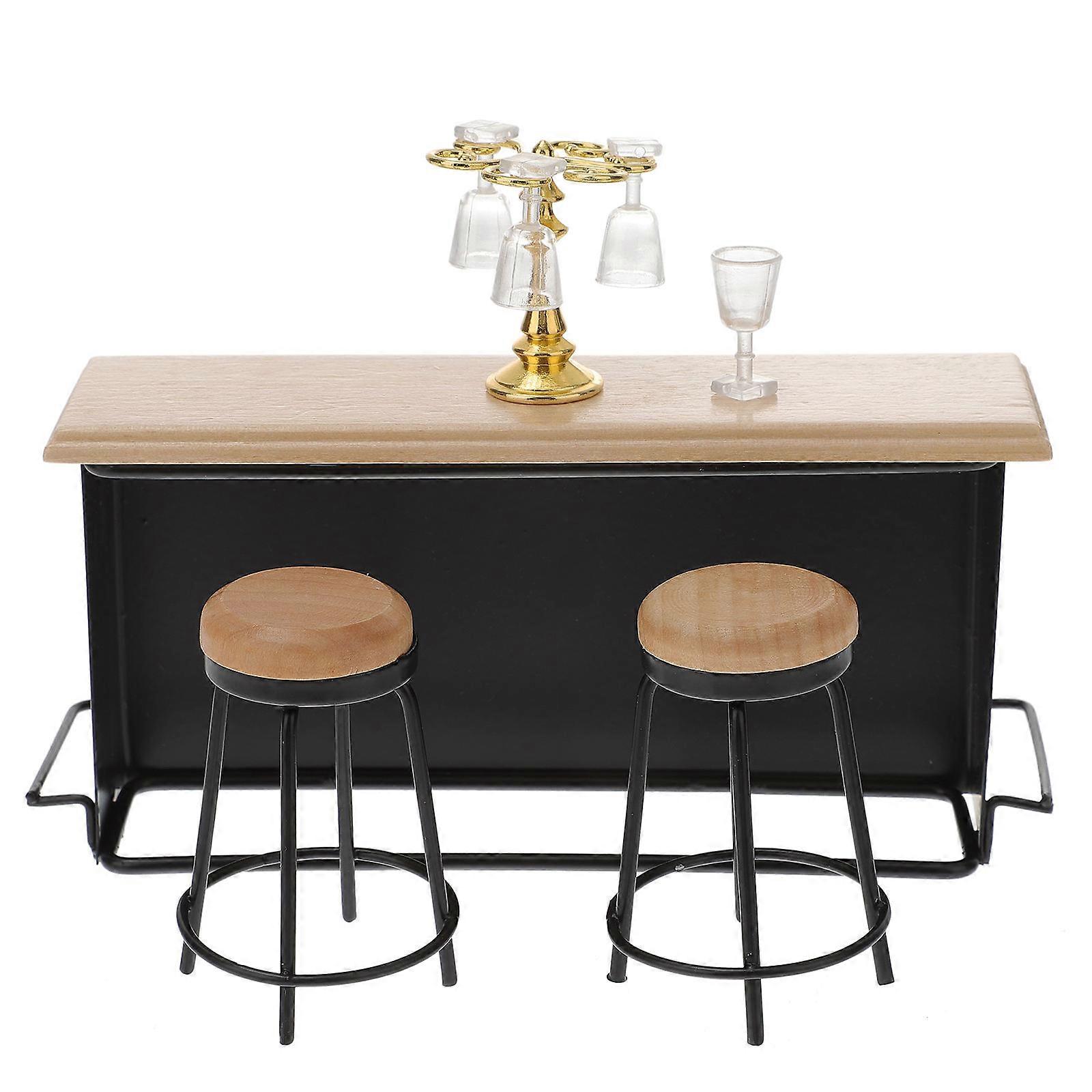 Miniature Bottle Bar Set Dollhouse Accessories Assorted Color Alloy Wood for Decoration 8Pcs