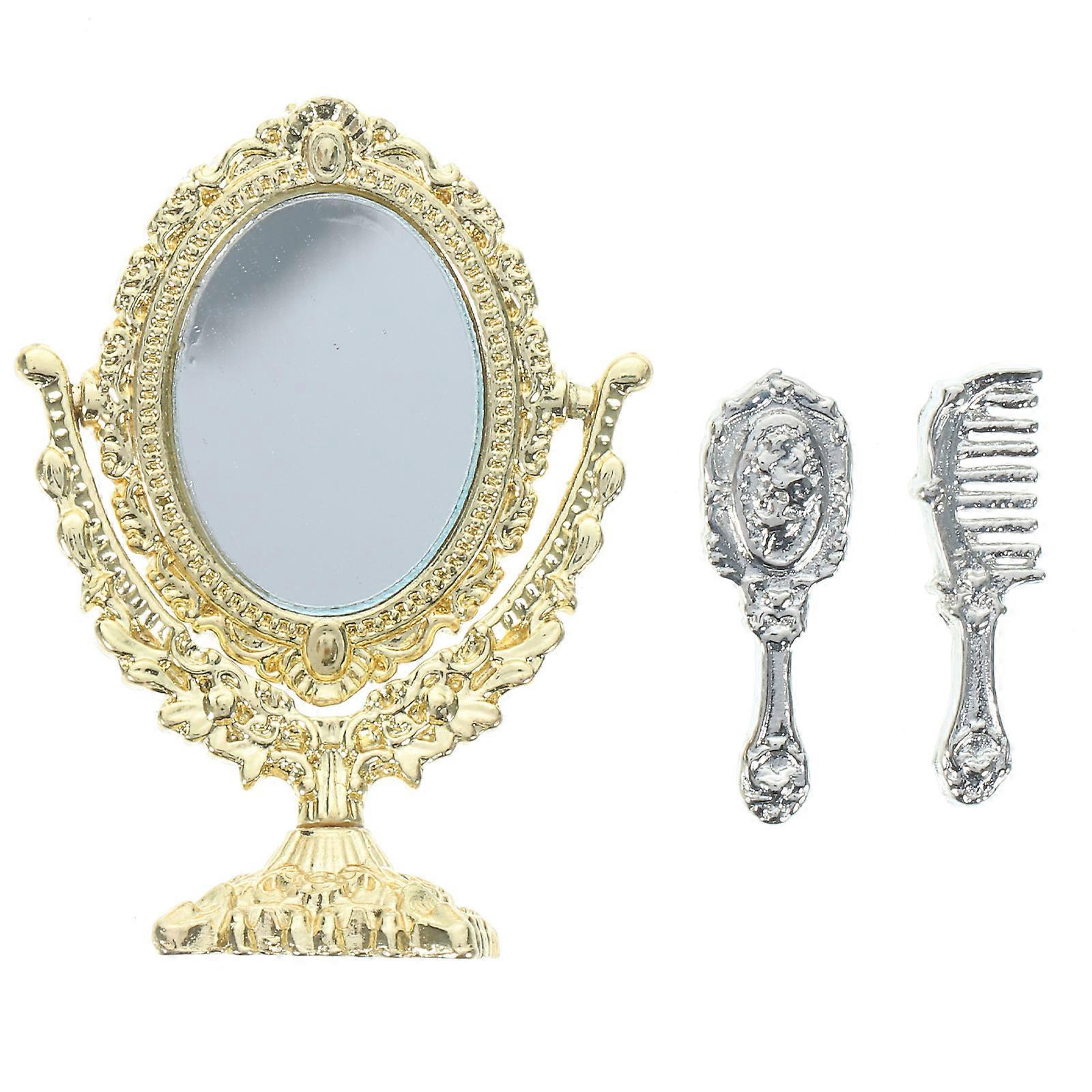 1 Set of Miniature Makeup Mirror Doll House Accessory Vintage Mirror Model With Comb Doll House Decor