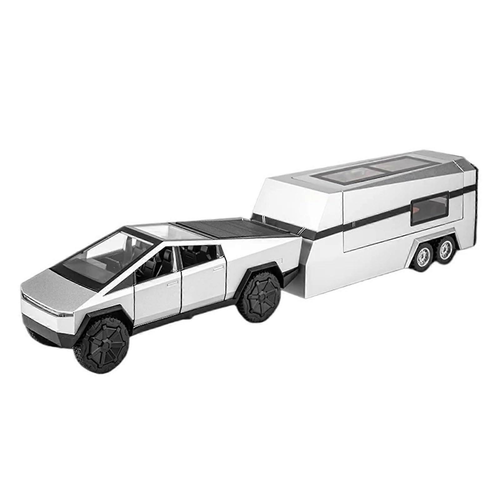 Miniature Models Large Scale 1:24 Cyber Pickup OffRoad Vehicle Metal Alloy DieCast Car Model Toy Sound Light Hobby Collector's Item Replica (Silver)