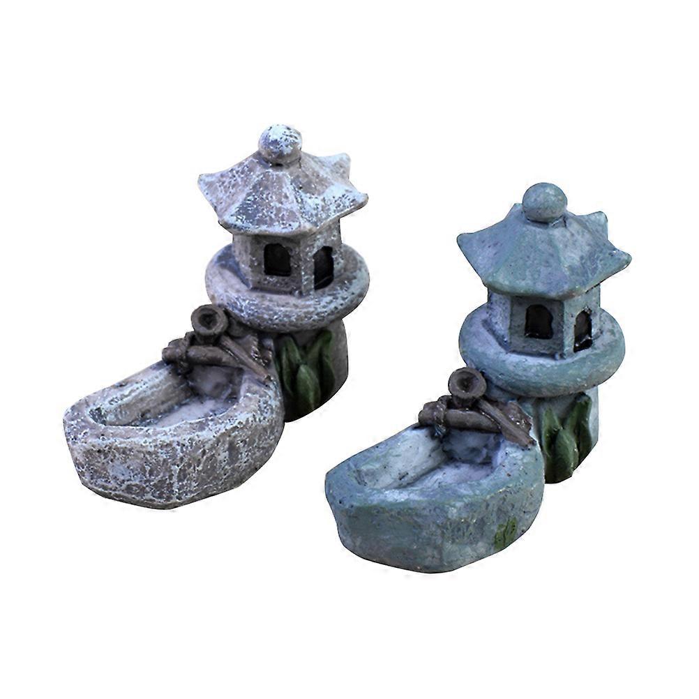 Miniature Landscape Decoration 2Pcs Mini Pool Tower Resin Ornament For Fairy Garden Home Decor Assorted Color