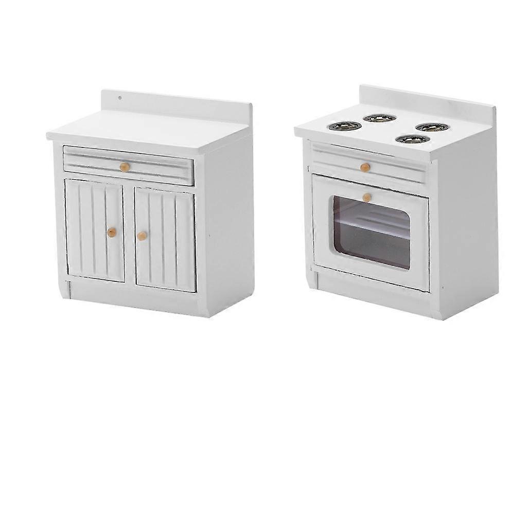 Miniature Wooden Kitchen Stove Top & Coutertop Furnishings for 1/12 Scale Dollhouse Life Scene Pretend Play Decor Accessory Toy White