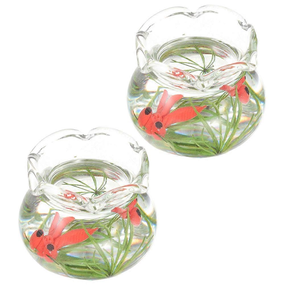 Miniature Aquarium Tiny Bowl Doll House Fish Tank Indoor Decoration Glass Cylindrical Learning Rewards 2Pcs