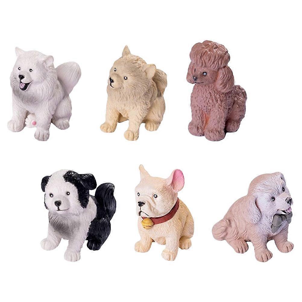 Miniature Dog Figurines Realistic Design For Cakes Bonsai Decorations Assorted Color Resin 6Pcs