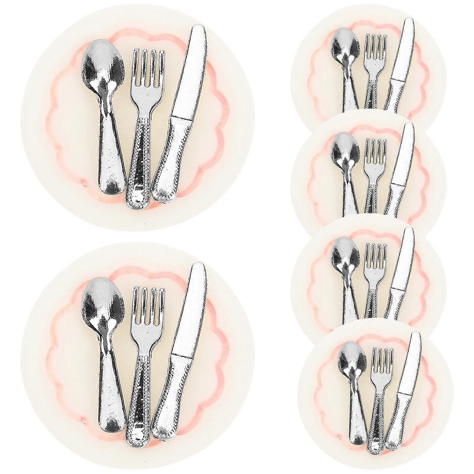 Our tableware model doll house ornaments can satisfy your need of decorating doll house. It is made of resin and alloy materials and will not be easily damaged. It can be used not only for doll house decoration, but also toy for kids, which is very practical. Features - -Material:Resin, alloy - Size: 2.70X2.70X0.30cm/1.06X1.06X0.12in - Size: 2.00X0.20X0.20cm/0.79X0.08X0.08in -This mini tableware has realistic colors and shapes, suitable for doll house decoration. -This lovely tableware decoration is a suitable doll house lovers and kids. -Contains different types of tableware, which can meet your different decoration needs. -Simple to use, the mini toy can help cultivate children's hands-on ability and bring them much fun. -Suitable for mini home decor, miniature landscaping scene, doll house and any other places that you like. Package list: 6 x miniature plates 6 x miniature cutters 6 x miniature forks 6 x miniature spoons